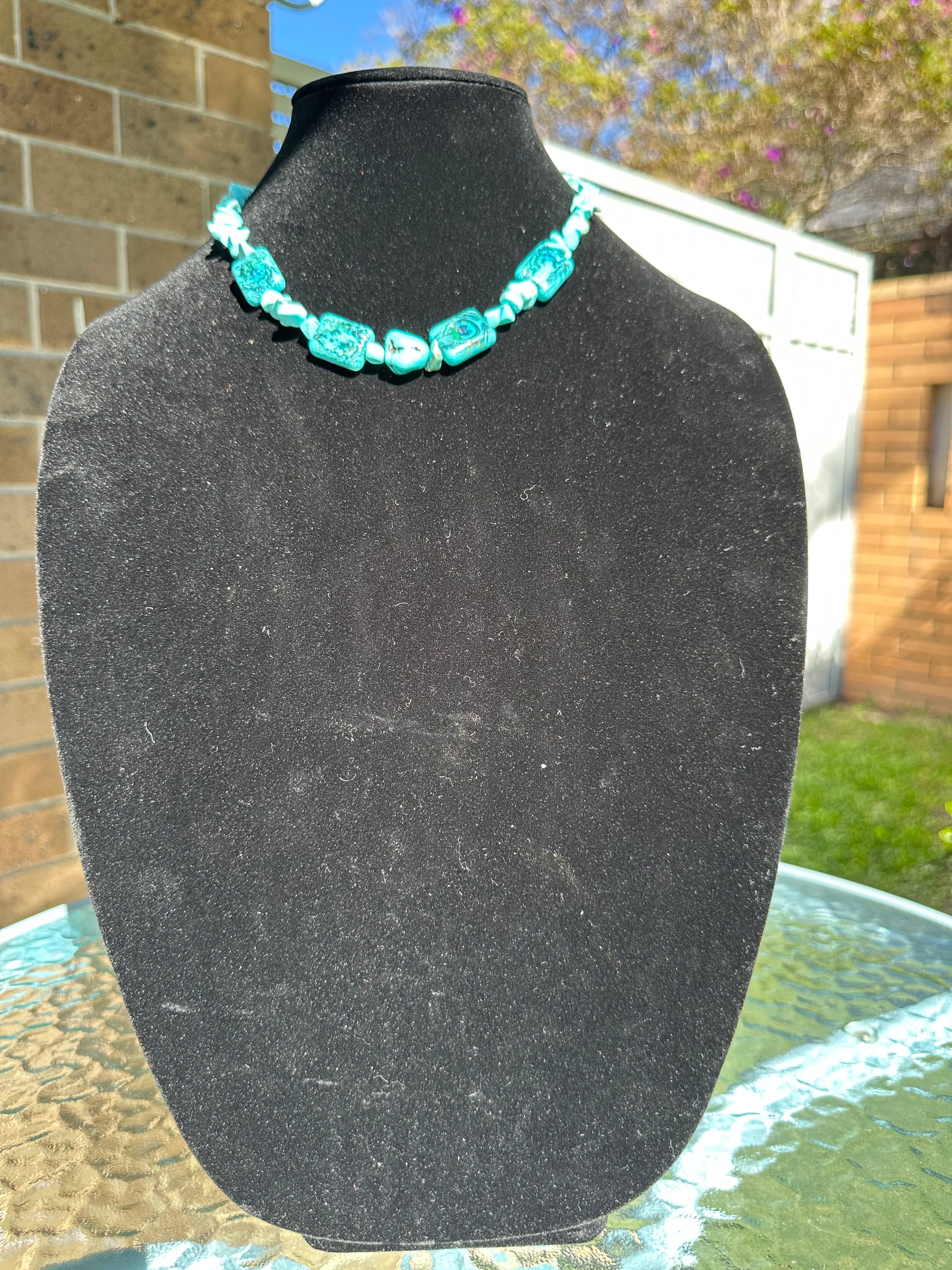Natural turquoise chips with resin heart accents